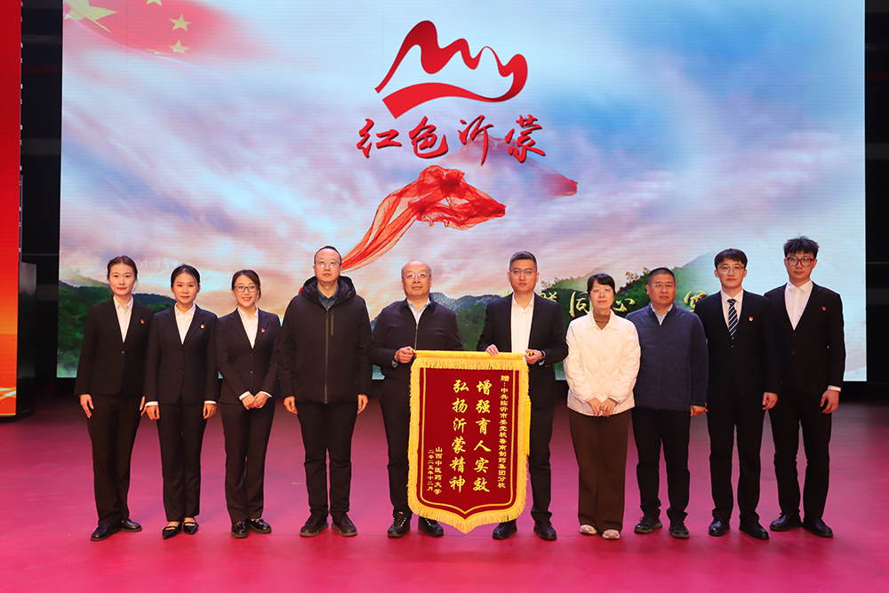 宣讲结束,梁峰岗代表学校向鲁南制药集团赠送锦旗,以感谢其对本次弘扬沂蒙精神活动的大力支持。