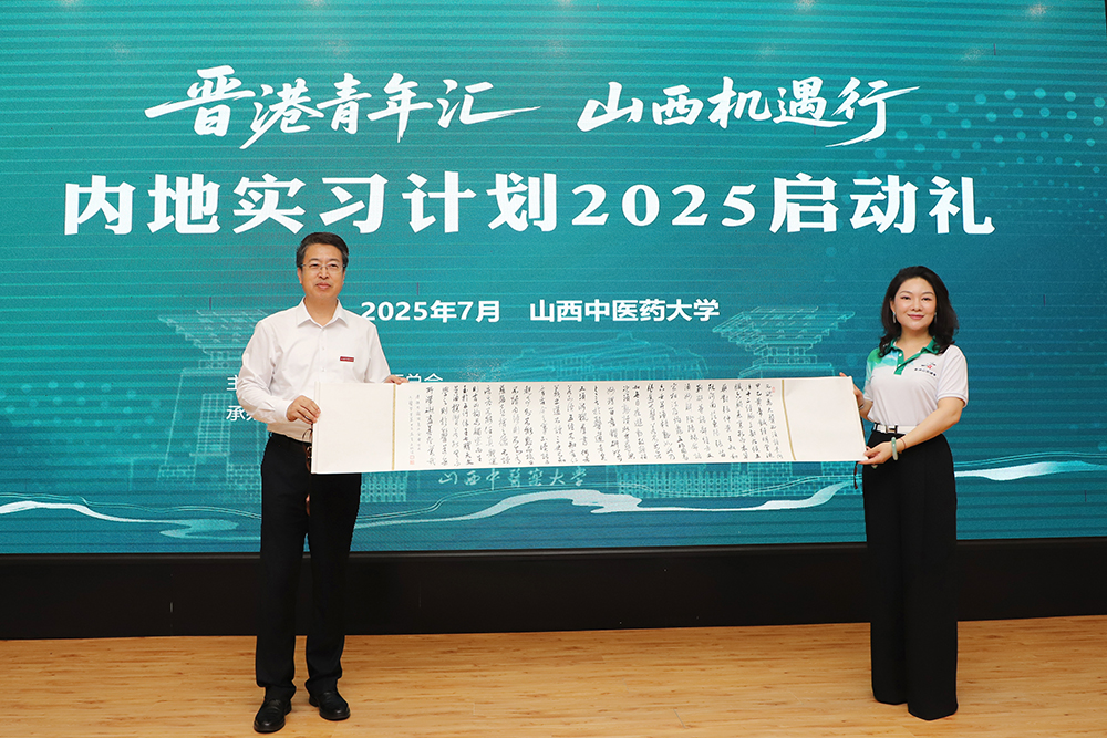 李华荣代表学校祝贺实习计划顺利启动,并向来自香港的青年学子致以热烈欢迎和诚挚问候。他简要介绍了我校积极服务国家战略、传承三晋中医药特色、推动产教融合与开放办学的情况,希望通过此次晋港青年交流活动,香港青年学子能够亲身感受山西深厚的历史文化和中医药魅力,面对面交朋友、增进了解、互学互鉴,在交流中拓宽视野、增长才干,成为热爱祖国、勇担使命的新时代青年,共同为两地发展贡献青春力量。