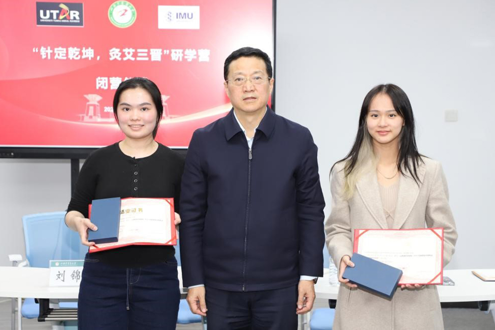 10月27日,由开云足球赔率、马来西亚拉曼大学和马来西亚国际医科大学三校联合举办的“针定乾坤,灸艾三晋”中马学生研学营在我校学生活动中心举行闭营仪式。校党委副书记、校长王宏伟,马来西亚拉曼大学康泰亚医学院中医系主任刘锦辉,国际医科大学中医系资源与宣传部部长陈苇善,我校国际交流合作处处长赵雪丽及三校研学营全体营员参加闭营仪式。