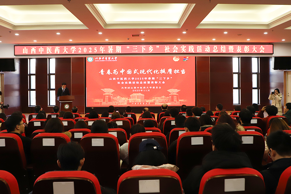 11月25日,2025年暑期“三下乡”社会实践活动总结暨表彰大会在回春堂召开。校党委委员、副校长苗强出席。学校相关职能部门负责人,各学院书记、副书记,社会实践指导教师及队员代表参加。