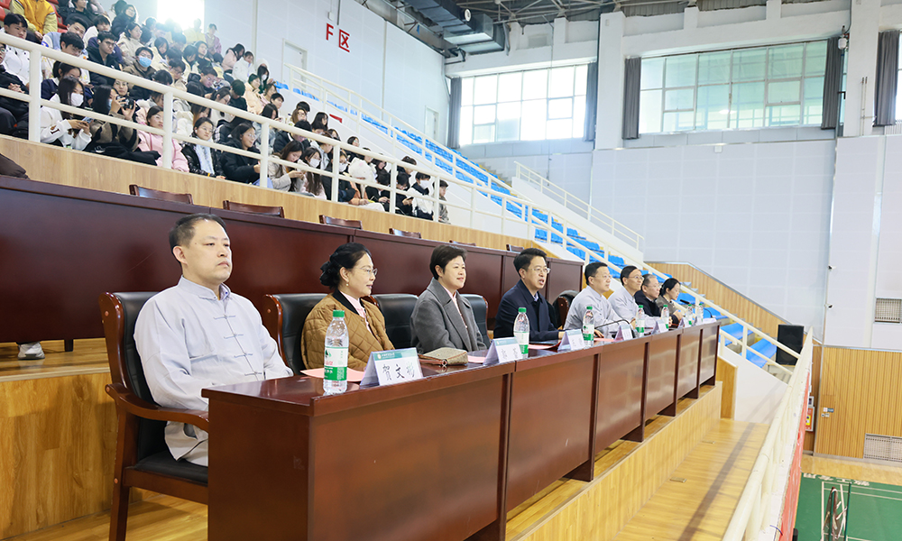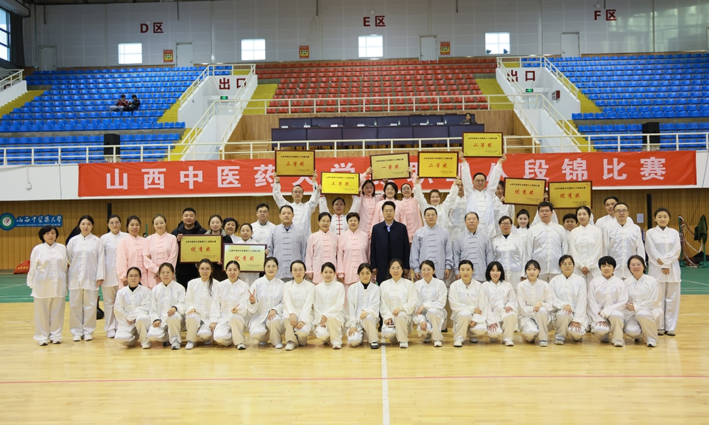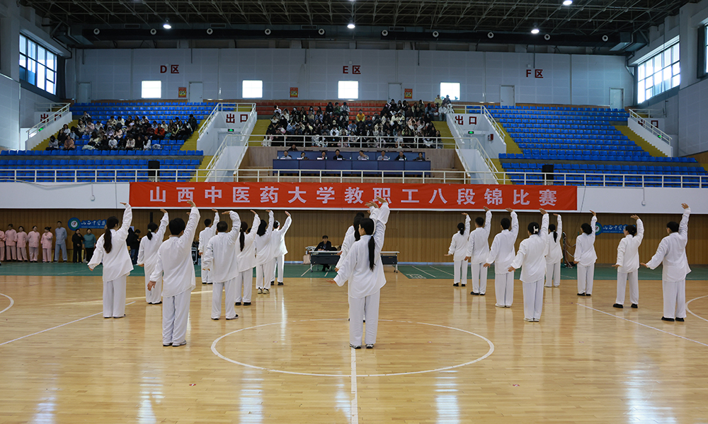 为深入贯彻《健康中国2030规划纲要》及全民健身计划要求,弘扬中华传统健身养生文化,12月1日下午,校工会与体育教学部联合主办的教职工八段锦健身气功比赛在杏林体育馆举行。校领导李华荣、王宏伟、苑静、乔军红、郭蕾、张桓虎、贺文彬出席活动。党委书记李华荣宣布比赛开始。全校10支分工会代表队、300余名教职工同台竞技,以规范舒展的招式演绎传统功法魅力,尽显育人者奋进风采。