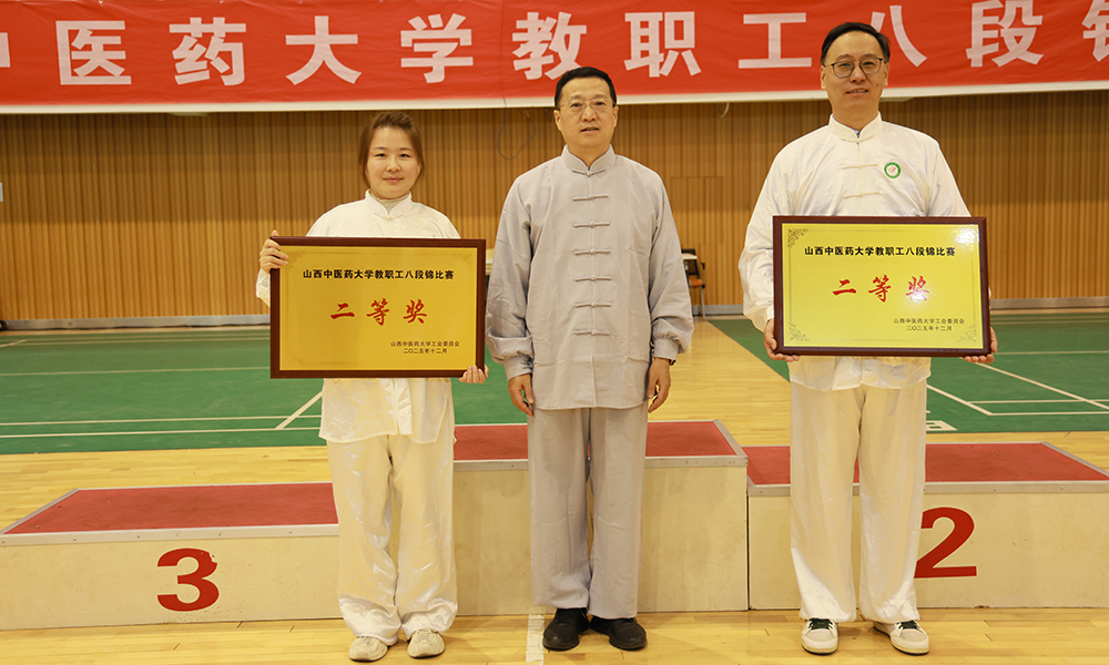 经激烈角逐,奖项逐一揭晓:机关分工会荣获团体一等奖;人文社会科学学院分工会、中药与食品工程学院分工会获二等奖;基础医学院分工会、国际教育学院分工会、健康服务与管理学院分工会获三等奖;傅山学院与临床学院分工会联队、继续教育学院分工会、研究生学院联队、马克思主义学院分工会、护理学院分工会获优秀奖。校领导为获奖队伍颁奖。