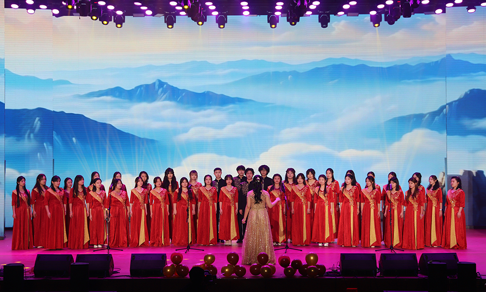 歌曲《向光而行》:第二临床学院学子用清澈嗓音唱响“追光”的信念,旋律中融入“守正创新”的精神,传递中医学子逐梦岐黄的坚定。舞蹈《灯火里的中国》:健美操队以柔美舞姿勾勒祖国山河的灯火璀璨,将中医药文化“阴阳平衡”的理念融入肢体语言,展现家国情怀与文化自信。民乐合奏《春江花月夜》:第一临床学院学子以古筝、笛箫演绎江南春夜,悠扬旋律中融入“天人合一”的中医哲学,带领观众感受传统美学与自然的和谐。歌曲《上春山》:第一临床学院与中药与食品工程学院联袂献唱,将草药生长的韵律融入歌声,唱出中医药人“踏春而行、采药为用”的浪漫情怀。