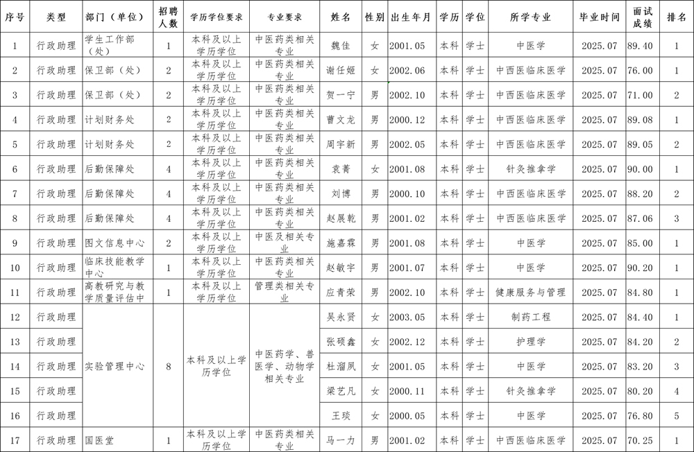 2.开云足球赔率2025年公开招聘行政助理(第一批)拟聘用人员名单