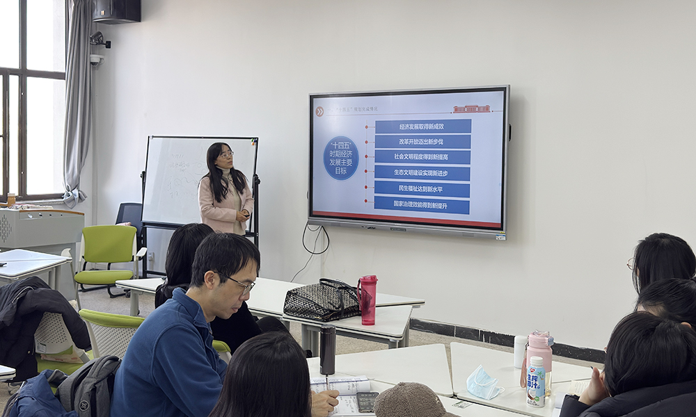 课堂上,王萍立足党的二十届四中全会精神核心要义,通过翔实数据与典型案例,系统回顾了“十四五”时期我国在经济社会发展、科技创新、民生改善等领域取得的标志性成就,清晰展现了“十四五”时期党和国家事业发展的非凡历程。针对“十五五”时期发展规划,王萍系统梳理了重点任务部署,层层递进解读政策部署的深层逻辑。讲座全程旁征博引,既衔接历史成就又锚定未来方向,让参会教师对党的二十届四中全会精神有了更透彻的理解,对“十五五”时期发展蓝图有了更清晰的认知。