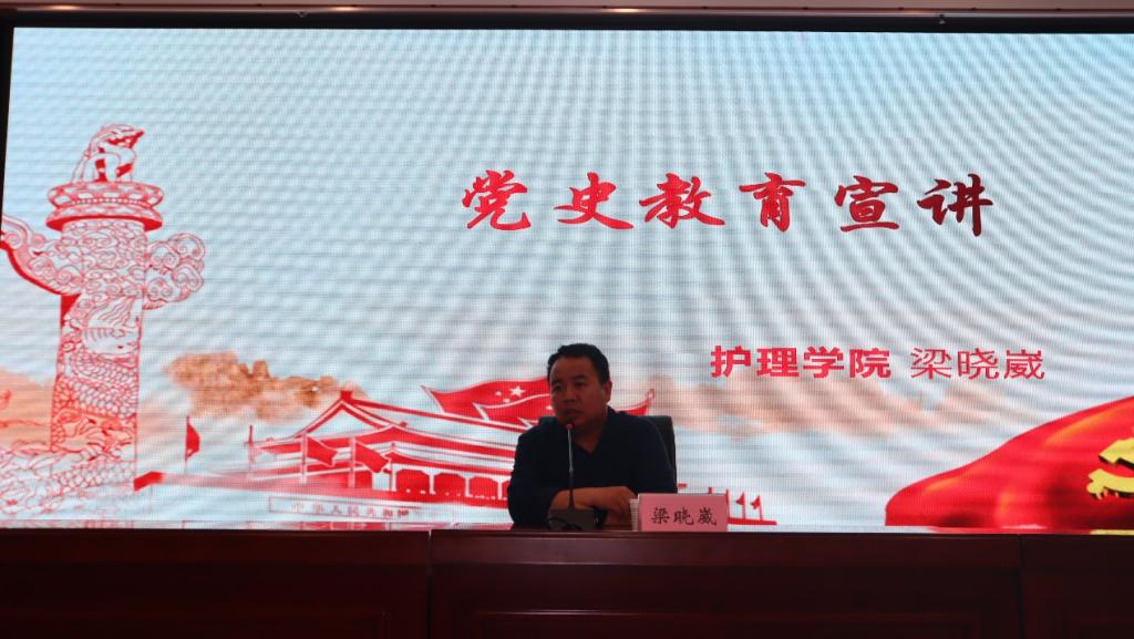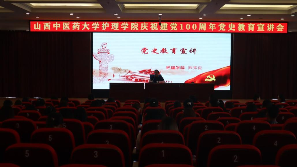 在迎接中国共产党成立100周年之际,6月25日,护理学院在图文信息中心学术报告厅举办庆祝中国共产党成立100周年党史学习教育宣讲会。护理学院院长罗秀夏、党委书记梁晓崴、全体教师党员、学生党员参加。护理学院副书记焦锐主持。